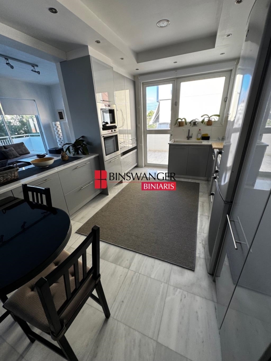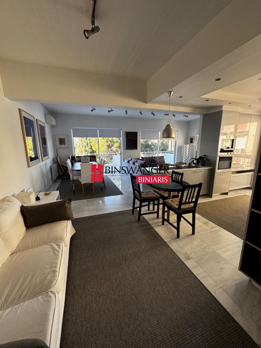 ΜΑΡΟΥΣΙ: 101 τ.μ. πλήρως επιπλωμένο, πολύ φωτεινό, γωνιακό διαμέρισμα 3ου ορόφου, ανακαινισμένο το 2015, σε άριστη κατάσταση, με θέση στάθμευσης και αποθήκη. Αποτελείται από σαλονοτραπεζαρία με άπλετο φυσικό φως κι ενεργειακό τζάκι, κουζίνα με εντοιχισμένες ηλεκτρικές συσκευές, Υ/Δ, λουτρό και WC επισκεπτών. Διαθέτει βεράντες με τέντες, κουφώματα αλουμινίου με διπλούς υαλοπίνακες, αυτόνομη θέρμανση πετρελαίου, κλιματισμό, δρύινα δάπεδα στα Υ/Δ και πλακάκια στους υπόλοιπους χώρους, ανελκυστήρα και θυροτηλεόραση. Βρίσκεται σε ήσυχη, αλλά κεντρική τοποθεσία, σύνορα με Χαλάνδρι, σε πολύ κοντινή απόσταση από εμπορικά κέντρα όπως το The Mall Athens ή το Golden Hall, αθλητικές εγκαταστάσεις, επαγγελματικούς χώρους, κατοικίες και λοιπά σημεία ενδιαφέροντος, με άριστες προσβάσεις λόγω της γειτνίασης με σταθμούς του ηλεκτρικού και του προαστιακού και της εγγύτητας στην Αττική Οδό. Μηνιαίο μίσθωμα: 2.000€ (ID ΑΚΙΝΗΤΟΥ 6501 - ΚΩΔ. ΣΥΝΕΡΓΑΤΗ 20473) BINSWANGER BINIARIS - ΠΙΣΤΟΠΟΙΗΜΕΝΟΙ ΜΕΣΙΤΕΣ - ΣΥΜΒΟΥΛΟΙ - ΕΚΤΙΜΗΤΕΣ - ΔΙΑΧΕΙΡΙΣΤΕΣ ΑΚΙΝΗΤΩΝ, ΕΤΟΣ ΙΔΡΥΣΗΣ 1993, Λεωφόρος Δημοκρατίας 1 & Λεωφόρος Κηφισίας, Νέο Ψυχικό. Τηλ. 210 6829000. Web: www.binswangerbiniaris.com