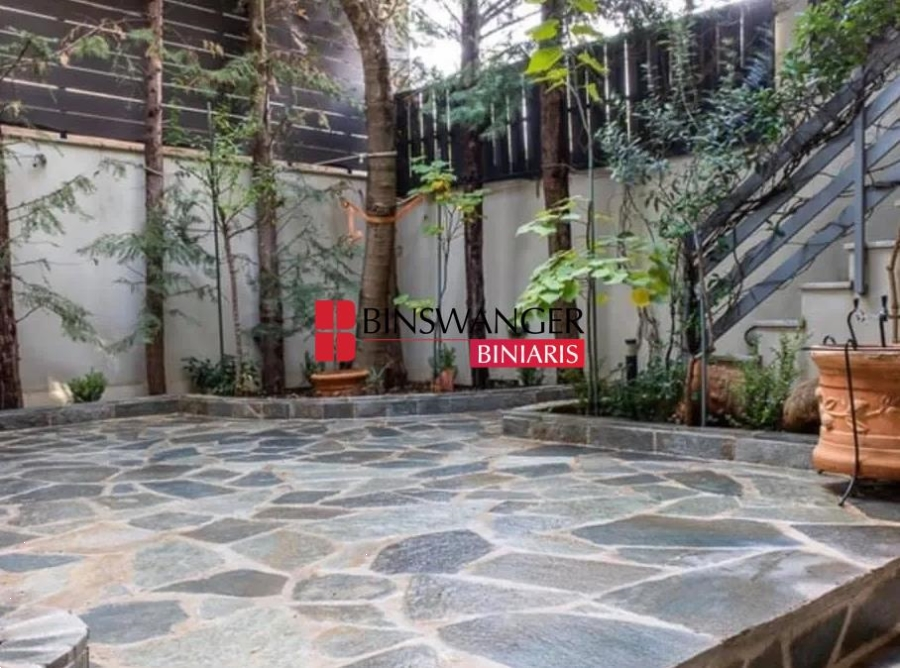 HALANDRI: Patima Halandri – 250 sq.m. corner maisonette of ultra-luxurious construction (built in 2011) with high-spec materials such as marble, granite, and premium tiles, in excellent condition. It is surrounded by a beautifully landscaped private garden of 30 sq.m. and extends over four levels. Specifically, it consists of 2 spacious and bright living rooms, 3 fully equipped kitchens, 4 bedrooms, two of which are luxurious master bedrooms, 2 bathrooms, and 3 guest WCs with showers. Additional features include a covered garage for 2 cars with the option for an additional parking space, 50 sq.m. of verandas with green views, electric awnings, aluminum frames with double glazing, built-in electrical appliances, autonomous oil heating, Daikin air conditioning, fireplace, solar water heater, sound insulation, and a main security door with hotel-style key card access, as well as a second reinforced security door. There is also the option to install an elevator, and the property offers layout flexibility with the possibility of dividing it into independent residences. The neighborhood is quiet and safe, with low car traffic, making it an ideal environment for comfortable and private living. Rent price: 2,600 (PROPERTY ID 6580 - AGENT ID 19817) BINSWANGER BINIARIS - CERTIFIED REALTORS - CONSULTANTS - VALUATORS - PROPERTY MANAGERS, ESTABLISHED 1993, 1 Demokratias Str. & Kifisias Ave., Neo Psychiko. Tel. 210 6829000. Web: www.binswangerbiniaris.com