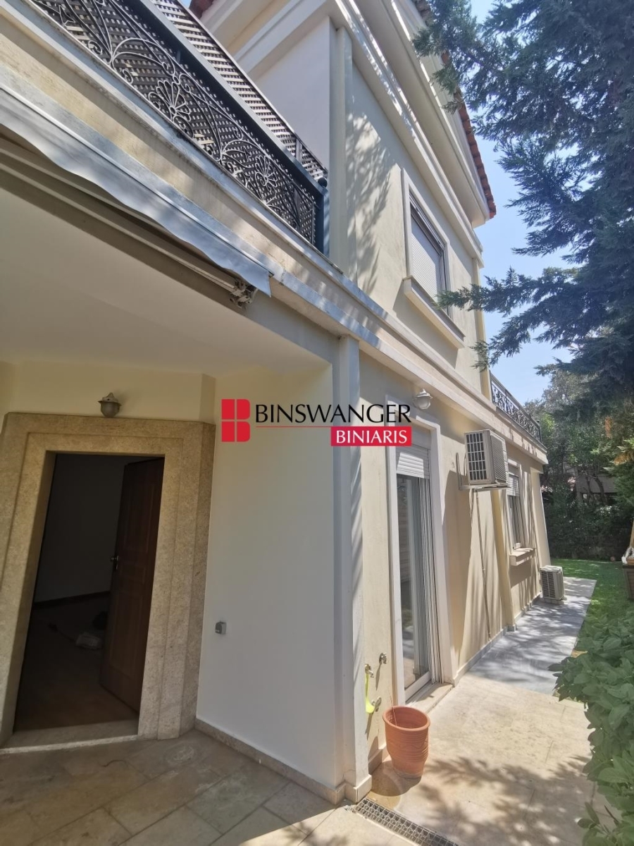 KIFISIA: Kato Kifisia, an exceptional 311 sq.m. maisonette, built in 2005, of high quality and aesthetics, ideal for families seeking comfort and functionality. It spans four levels, offering a spacious reception area with a fireplace on the ground floor, which connects directly to the elegant garden, as well as a separate fully equipped kitchen, an office, and a guest WC. On the first floor, there are three bedrooms, one of which is a master with a private bathroom, while the other two are served by an additional bathroom. All rooms have access to large terraces with open views. The attic is a large open-plan space with a bathroom, ideal for an extra bedroom, office, or living area. The semi-basement features a playroom/living room with a fireplace, a bathroom, a service room, and an independent entrance. The residence includes two parking spaces, a storage room, an elevator, autonomous oil heating with individual control per level, air conditioning, aluminum frames with double glazing and screens, a satellite antenna, security doors, an intercom system, an alarm system, and a fire detection system. A unique property, just 720 meters from the ISAP train station, combining quality, comfort, and security in one of the most privileged areas of Kifisia. Monthly Rent: 3.300€ (PROPERTY ID 6593 - AGENT ID 20473) BINSWANGER BINIARIS - CERTIFIED REALTORS - CONSULTANTS - VALUERS - PROPERTY MANAGERS, ESTABLISHED 1993, 1 Demokratias St. & Kifisias Ave., Neo Psychiko. Tel. 210 6829000. Web: www.binswangerbiniaris.com