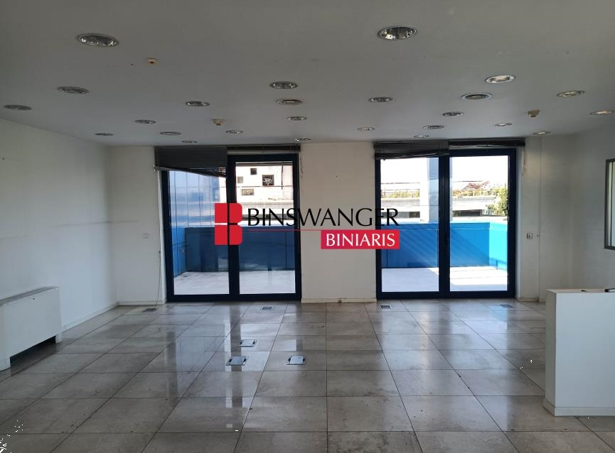 CHALANDRI: Agia Varvara, on Kifisias Avenue, modern office spaces with a total area of 750 sq.m., in a highly visible and easily accessible location, occupying the top two floors of a bioclimatic building constructed in 2004. The building consists of four above-ground levels (Ground floor: 45 sq.m., Mezzanine: 50 sq.m., 1st floor: 340 sq.m., and 2nd floor: 315 sq.m.) with office and retail use. It can accommodate 65-75 offices and features independent entrances, 3 meeting rooms, 4 WCs, 2 kitchens, as well as four underground levels with storage areas and 85 parking spaces, accessible via a double ramp. Additionally, it includes raised floors, suspended ceilings, a multi-zone VRV heating/cooling and ventilation system, Cat6e wiring, and a security system. Monthly Rent: 20.000€ (PROPERTY ID 6626 - AGENT ID 19817) BINSWANGER BINIARIS - CERTIFIED AGENTS - CONSULTANTS - APPRAISERS - PROPERTY MANAGERS, ESTABLISHED IN 1993, 1 Dimokratias St. & Kifisias Ave., Neos Psychikos. Tel. 210 6829000. Web: www.binswangerbiniaris.com