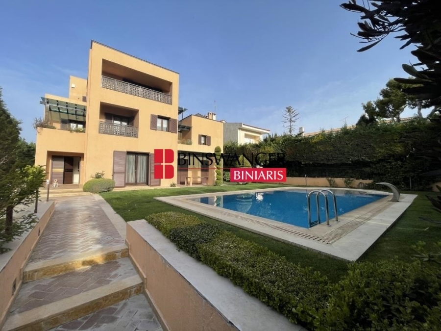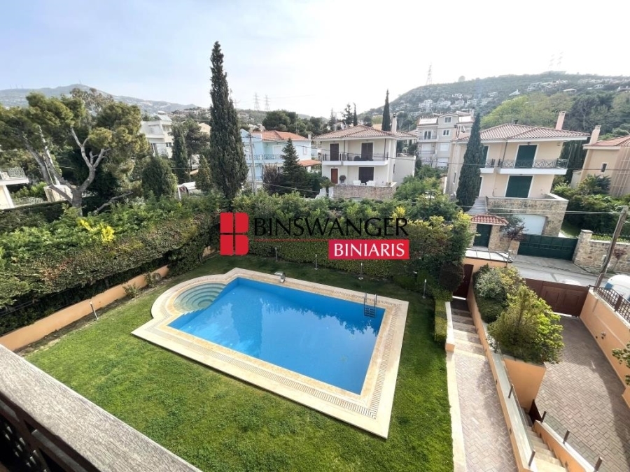 PENTELI: EXCLUSIVE MEDIATION, 600 sq.m. luxurious detached house of excellent construction with swimming pool, garden and unlimited view on a plot of 1,000 sq.m. in the best area of Palaia Penteli. The detached house is developed on 4 levels, which are connected with an internal staircase and elevator. The ground floor is bright and consists of a comfortable living room with a fireplace, an office, a bathroom, and a large independent kitchen with a dining area and built-in electrical appliances. The floor above the ground floor consists of 3 spacious bedrooms and a bathroom, while the second floor consists of 1 Master bedroom with its own bathroom and a large terrace with a view. The basement floor, which is suitable for service room, has a living room with a fireplace, a bedroom, a bathroom, a playroom, a walk-in closet and 3 closed parking spaces.In the surrounding area, around the perimeter of the swimming pool, there is a wonderful garden with trees, lawn and a covered BBQ.The detached house has aluminum windows with double glazing, oak floors, autonomous heating and air conditioning per level, perimeter verandas, security cameras, security door, alarm, video door entry and a storage room. It is located in a quiet area, near to the National Observatory of Athens - Penteli and close to parks, schools and sports facilities.Sale price: €1,700,000 (PROPERTY ID 6751 - AGENT ID 2) BINSWANGER BINIARIS - CERTIFIED BROKERS - CONSULTANTS - VALUERS - PROPERTY MANAGERS, ESTABLISHED IN 1993, 1 Demokratias Avenue & Kifissias Avenue, Neo Psychiko. Tel. 210 6829000. Web: www.binswangerbiniaris.com