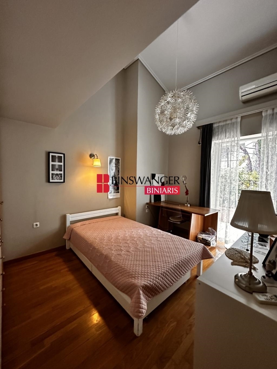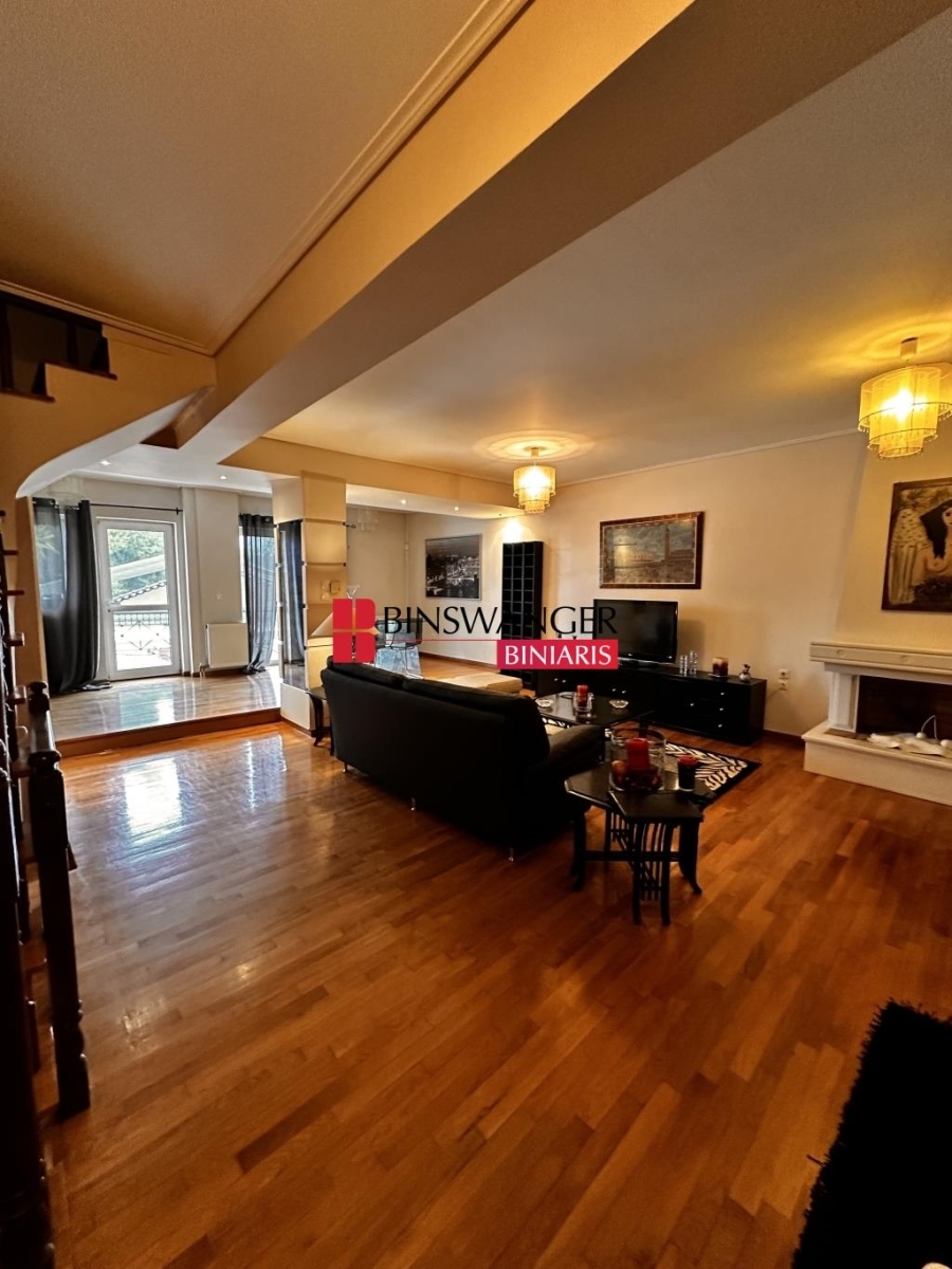 AGIOS STEFANOS: 270 sq.m. exceptional four-level bright and front-facing maisonette, built in 2000, in excellent condition. The maisonette is developed as follows: the semi-ground floor includes an open split-level reception area with a fireplace, ideal for hosting guests. The ground floor offers a spacious kitchen with a dining area, a second living room with a fireplace, and a bathroom. The semi-basement features a laundry room, a storage room, and an additional bedroom. The first floor comprises three large, high-ceilinged bedrooms. The attic, enclosed with glass and offering unrestricted panoramic views, can be configured as an office or a fifth bedroom. The maisonette includes a garden, a parking space, pre-installation for an elevator, spacious terraces, aluminum frames with double-glazed windows, autonomous oil heating, air conditioning, electrical appliances, oak floors, a security door, and an alarm system. It also has the potential to be divided into independent residences. Situated in a quiet, green area, it is ideal for families seeking a peaceful and safe environment. Sale Price: €330,000 (PROPERTY ID 6894 - AGENT ID 19268) - BINSWANGER BINIARIS - CERTIFIED REALTORS - CONSULTANTS - VALUATORS - PROPERTY MANAGERS, ESTABLISHED 1993, 1 Demokratias St. & Kifisias Ave., Neo Psychiko. Tel. 210 6829000. Web: www.binswangerbiniaris.com